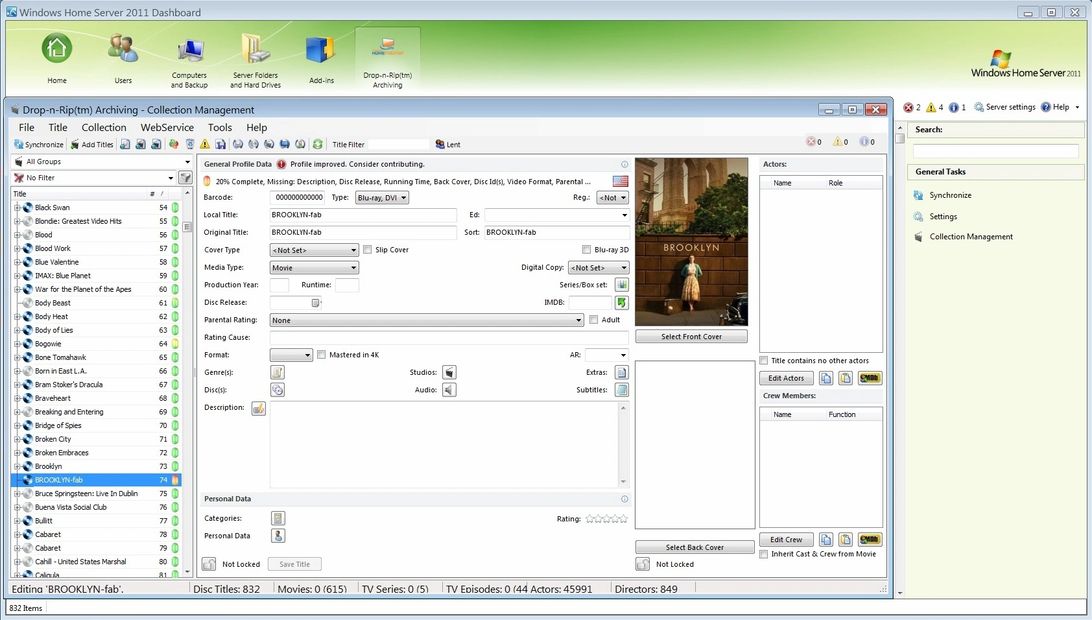 Open Collection Management by clicking on it on the right side, under General Tasks. Go to movie which is not 100% complete. In this sample it's movie "Brooklyn-Fab". (I modified it for training purposes.) Correct title is "Brooklyn".